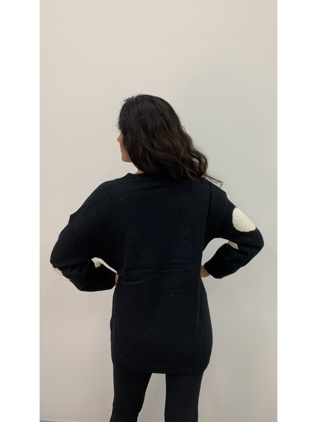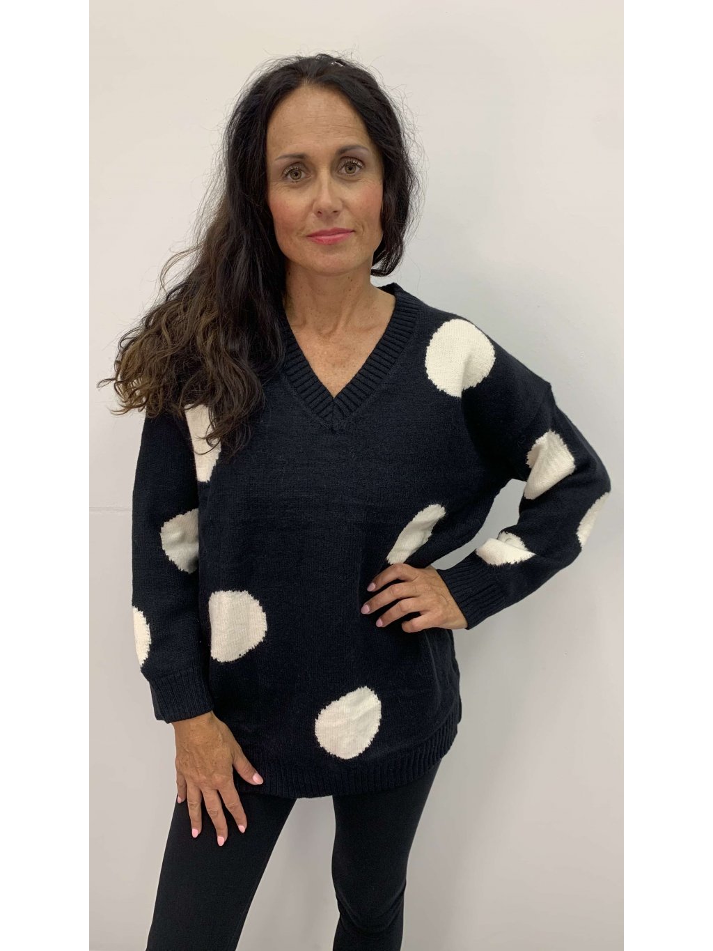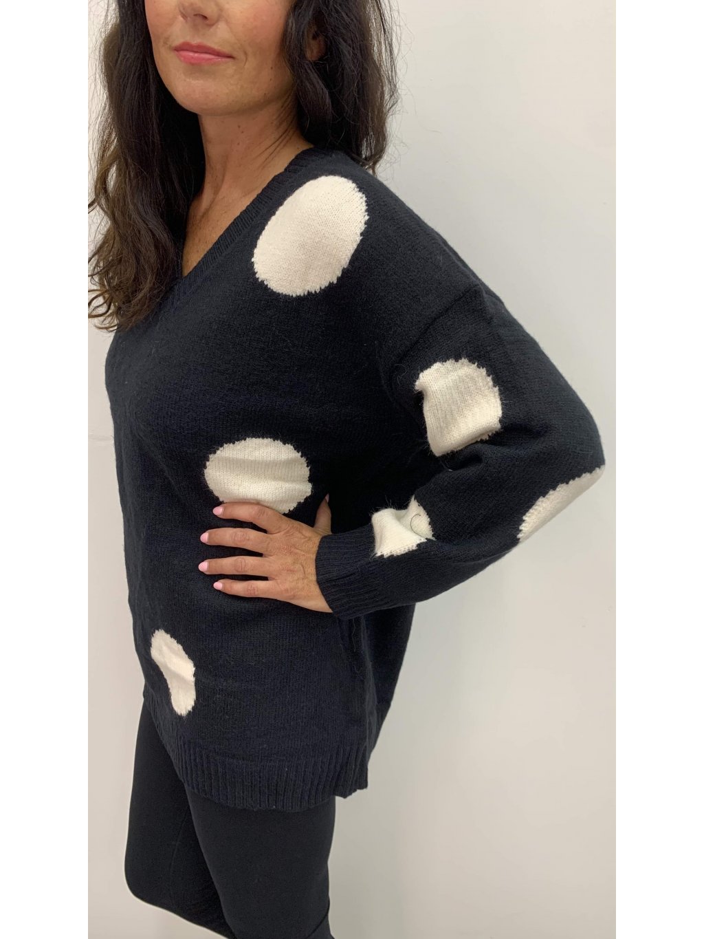 Černý svetr s bílými puntíky