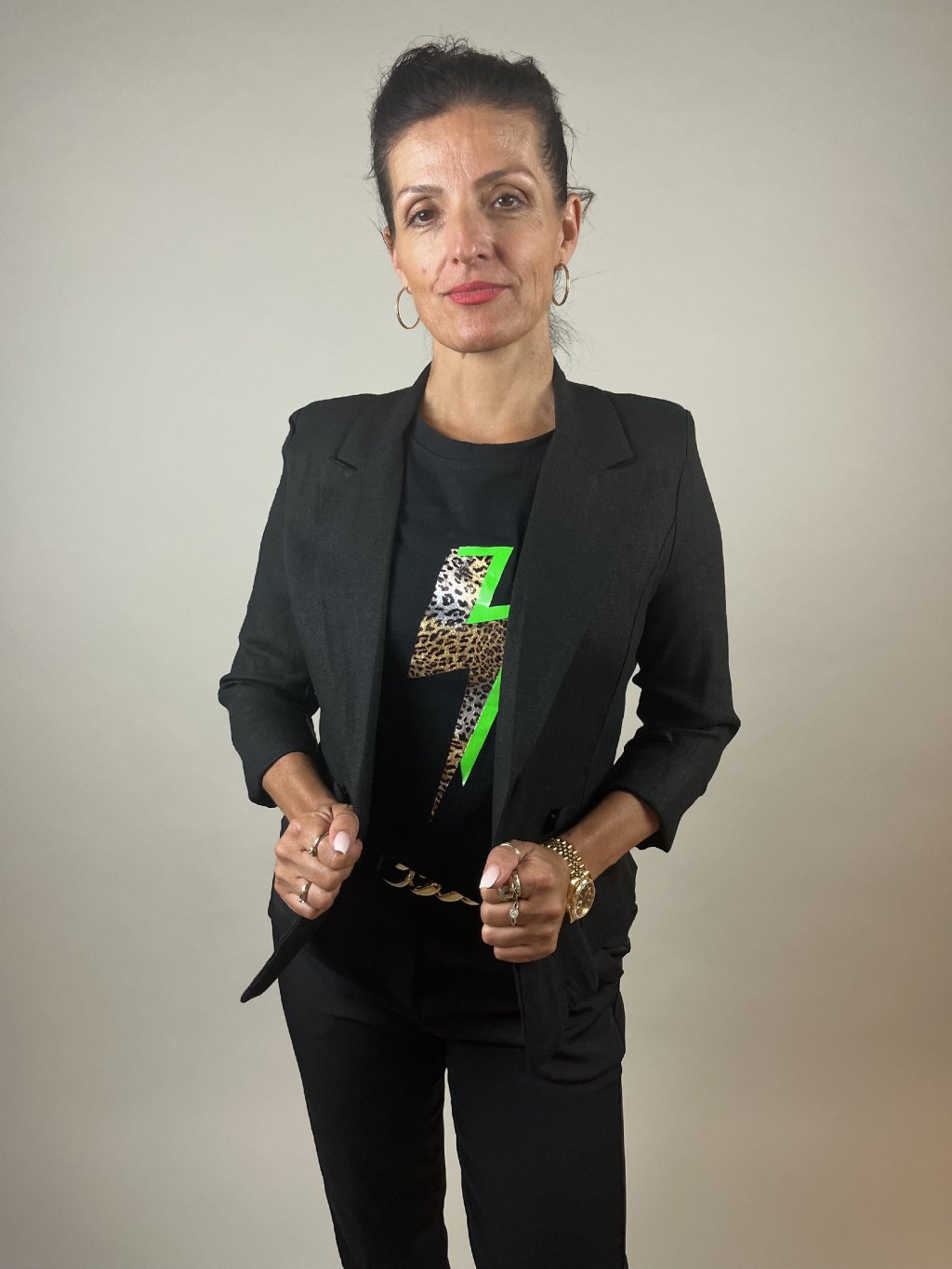 Kalhoty se zlatým páskem - černé