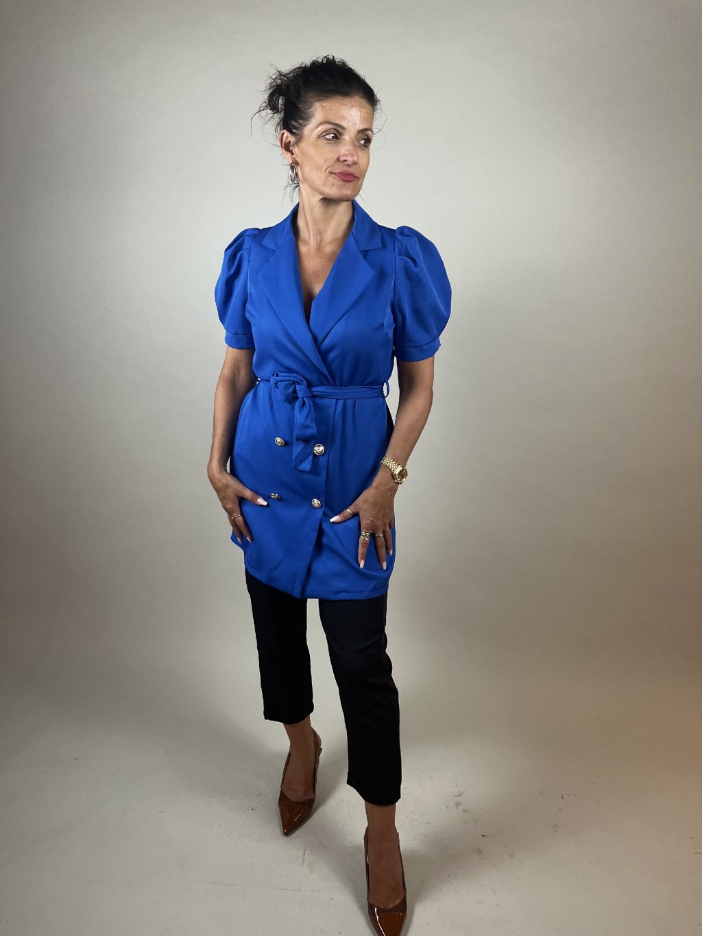 Výška modelky: 170 cm Hruď: 96 cm Pas: 77 cm Boky: 100 cm