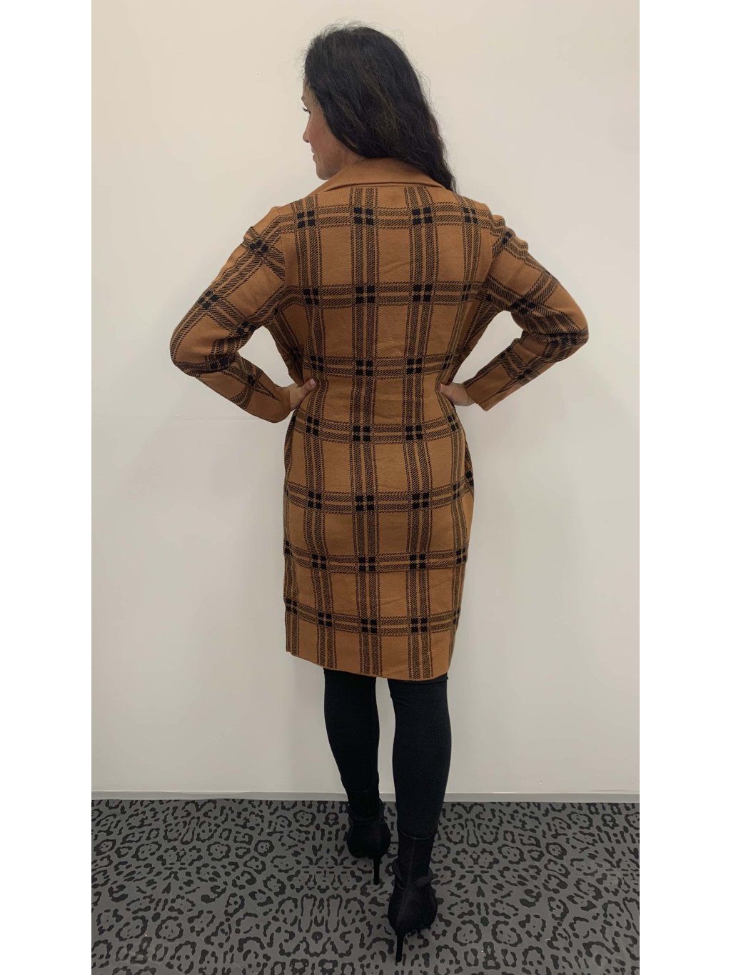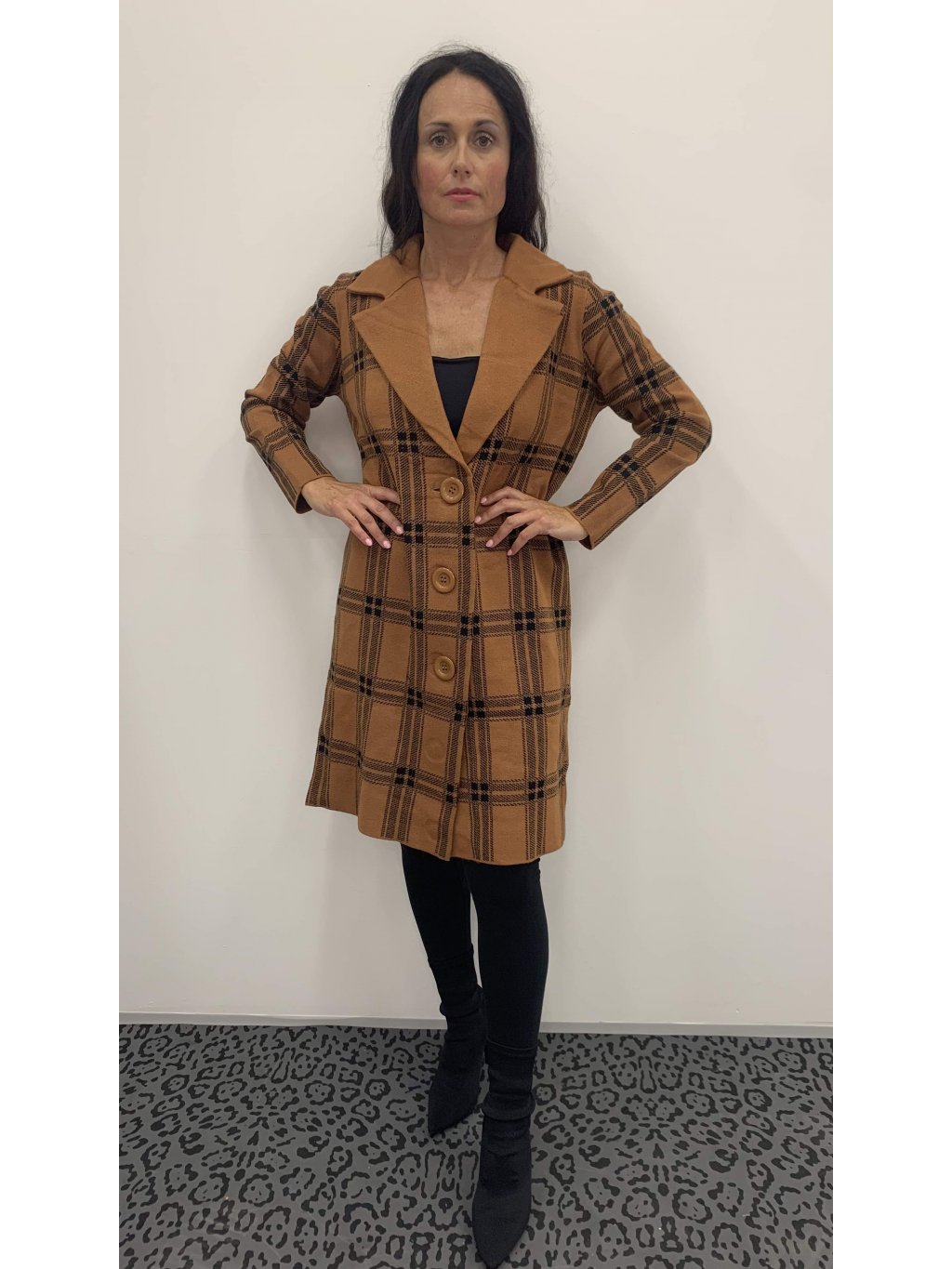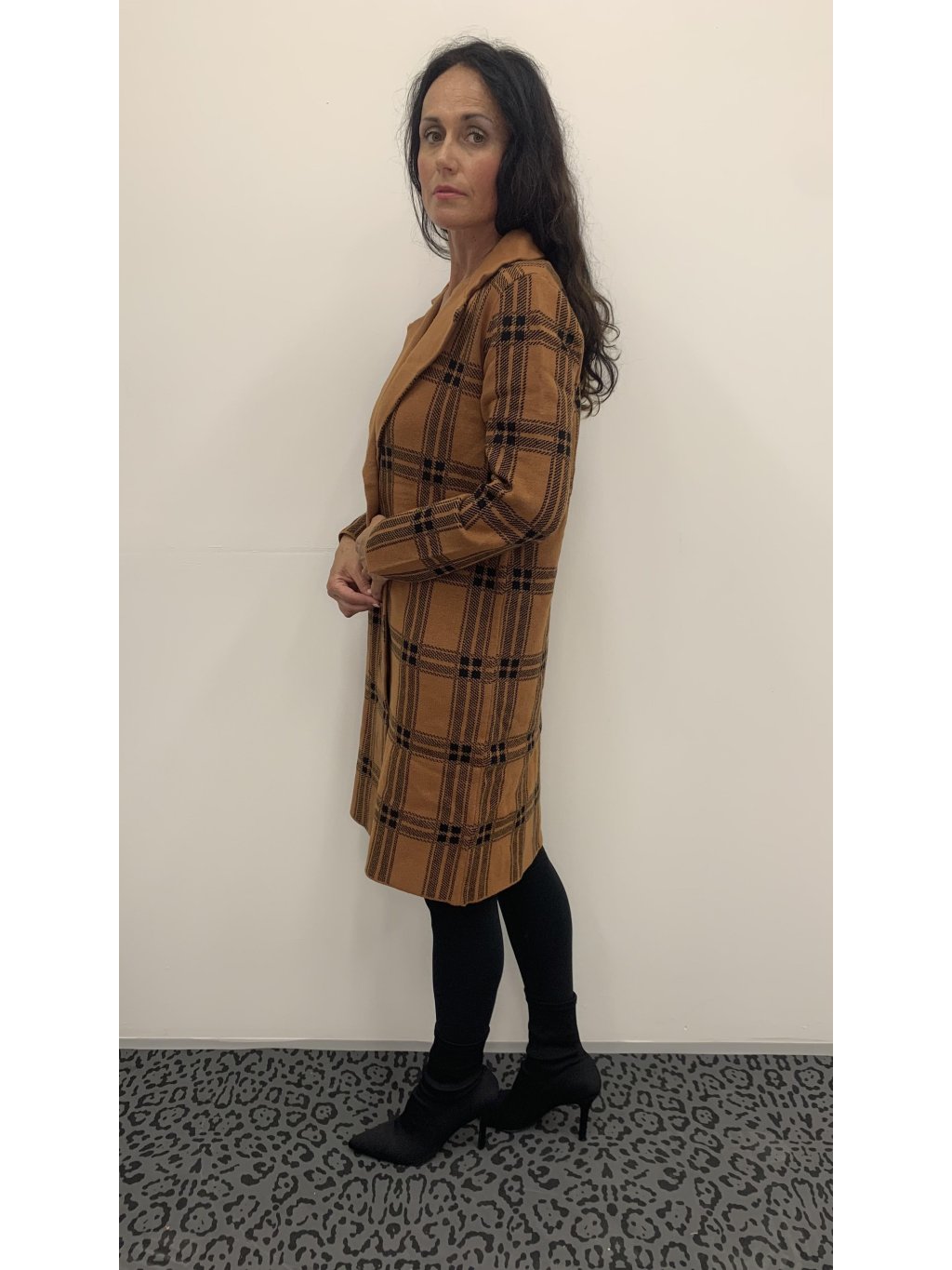 Kostkovaný cardigan - caramel
