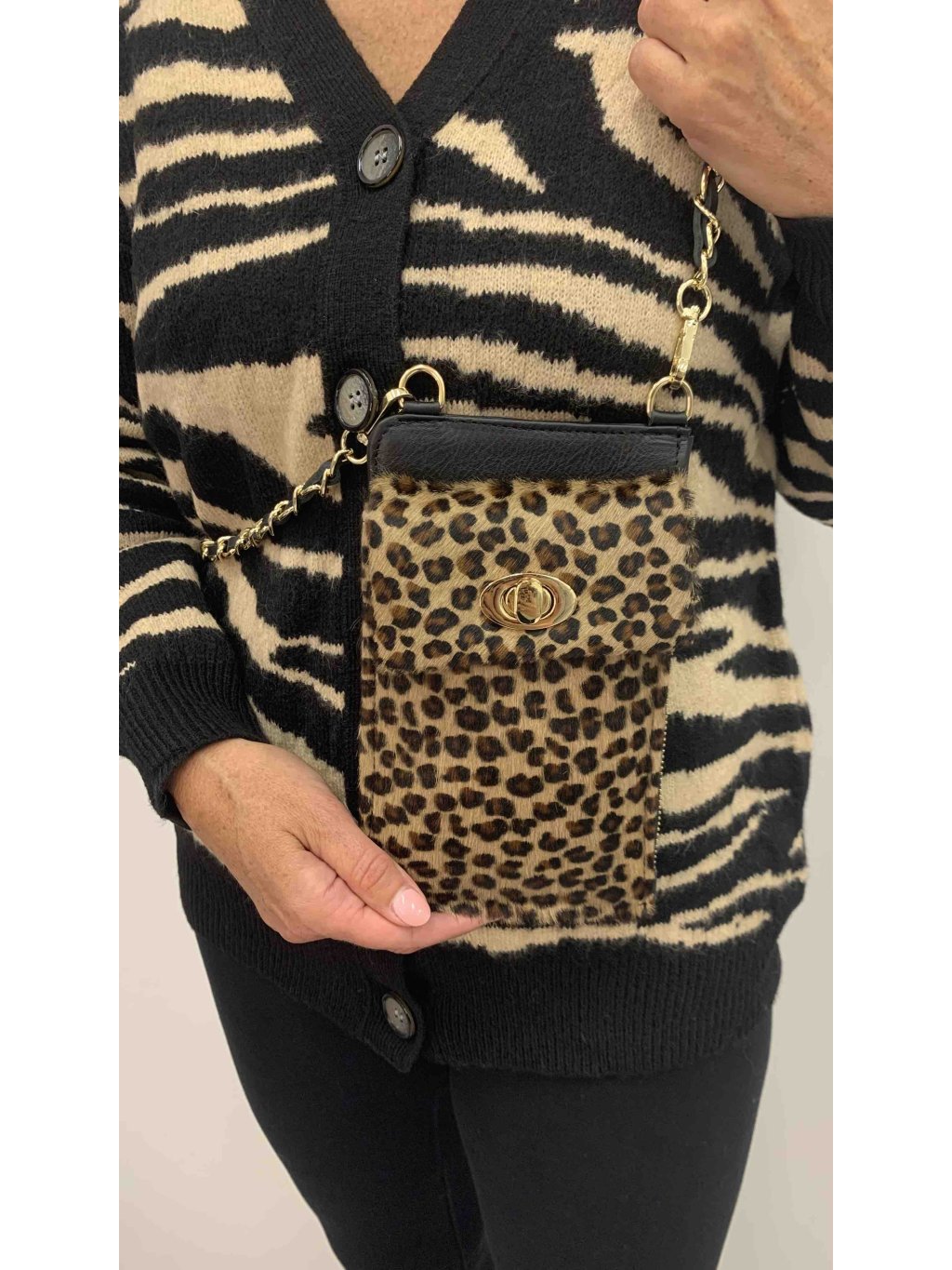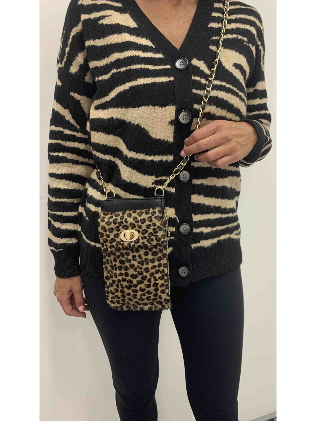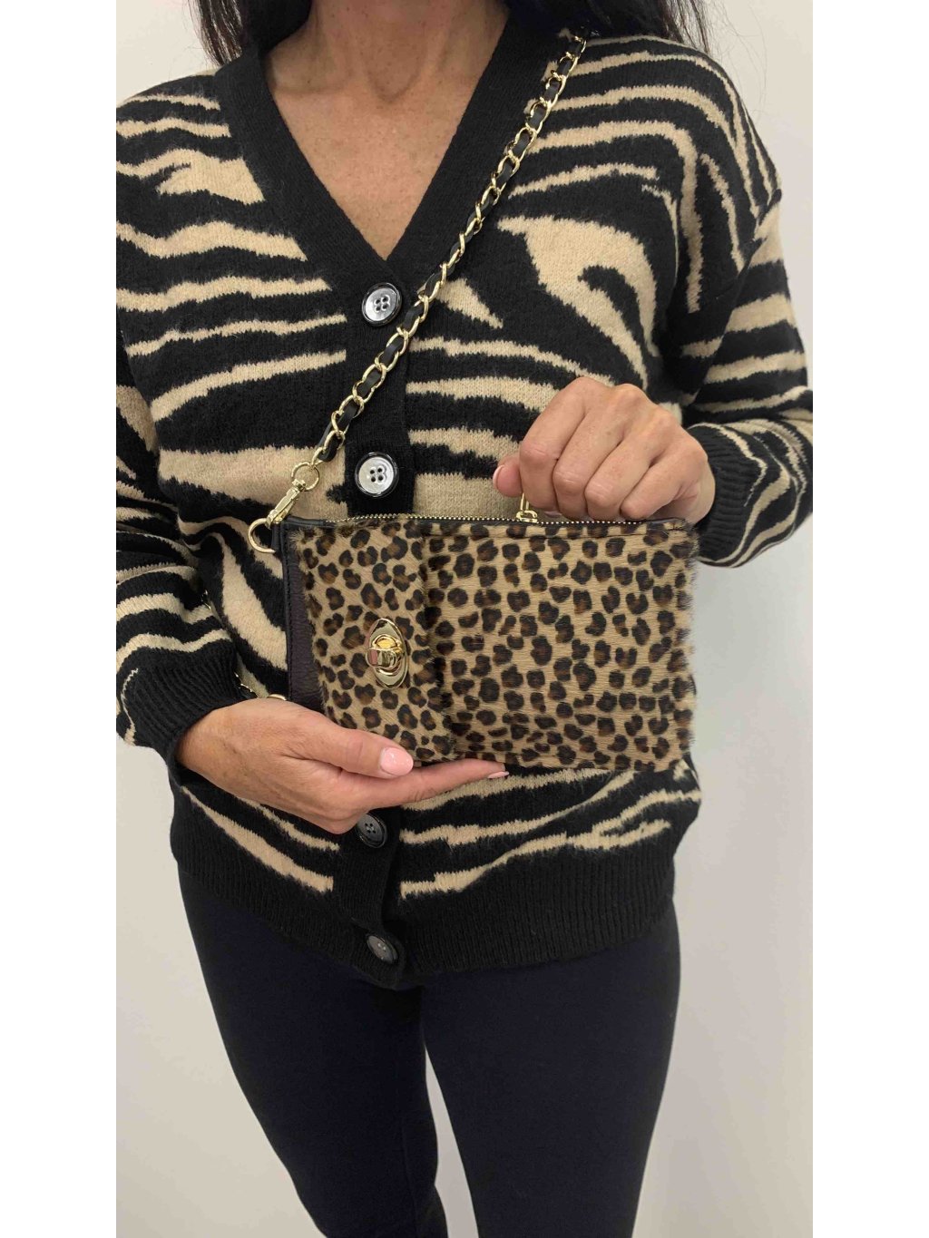 Kožená luxusní crossbody jemný vzor leopard, pravá kůže