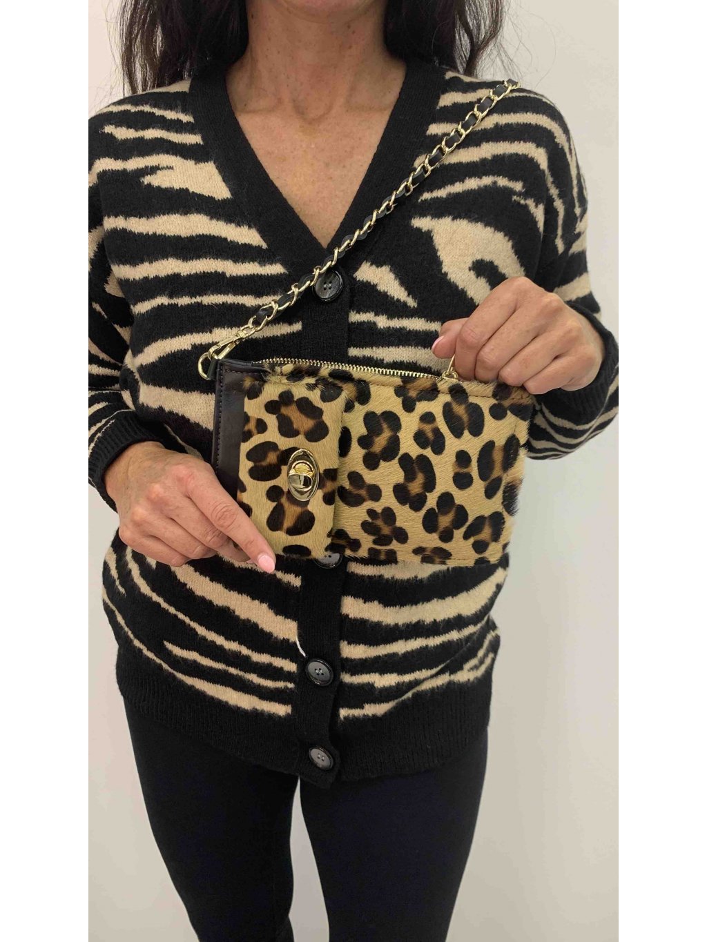Kožená luxusní crossbody vzor leopard, pravá kůže