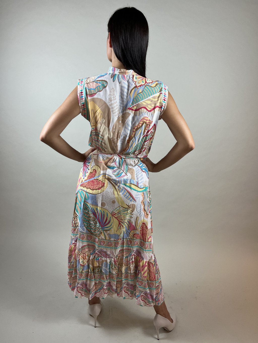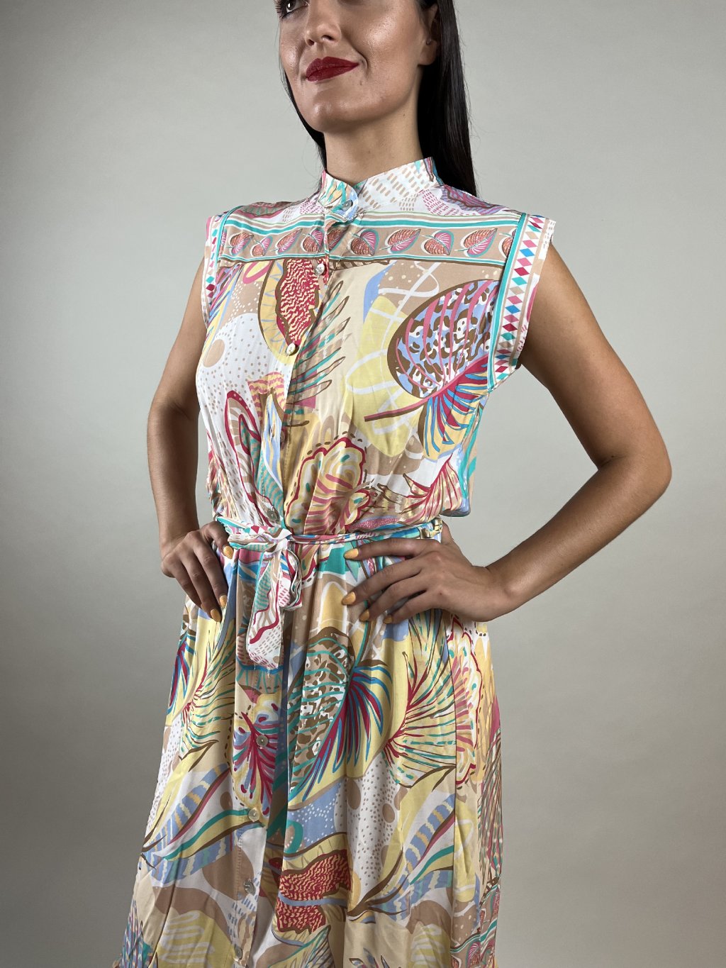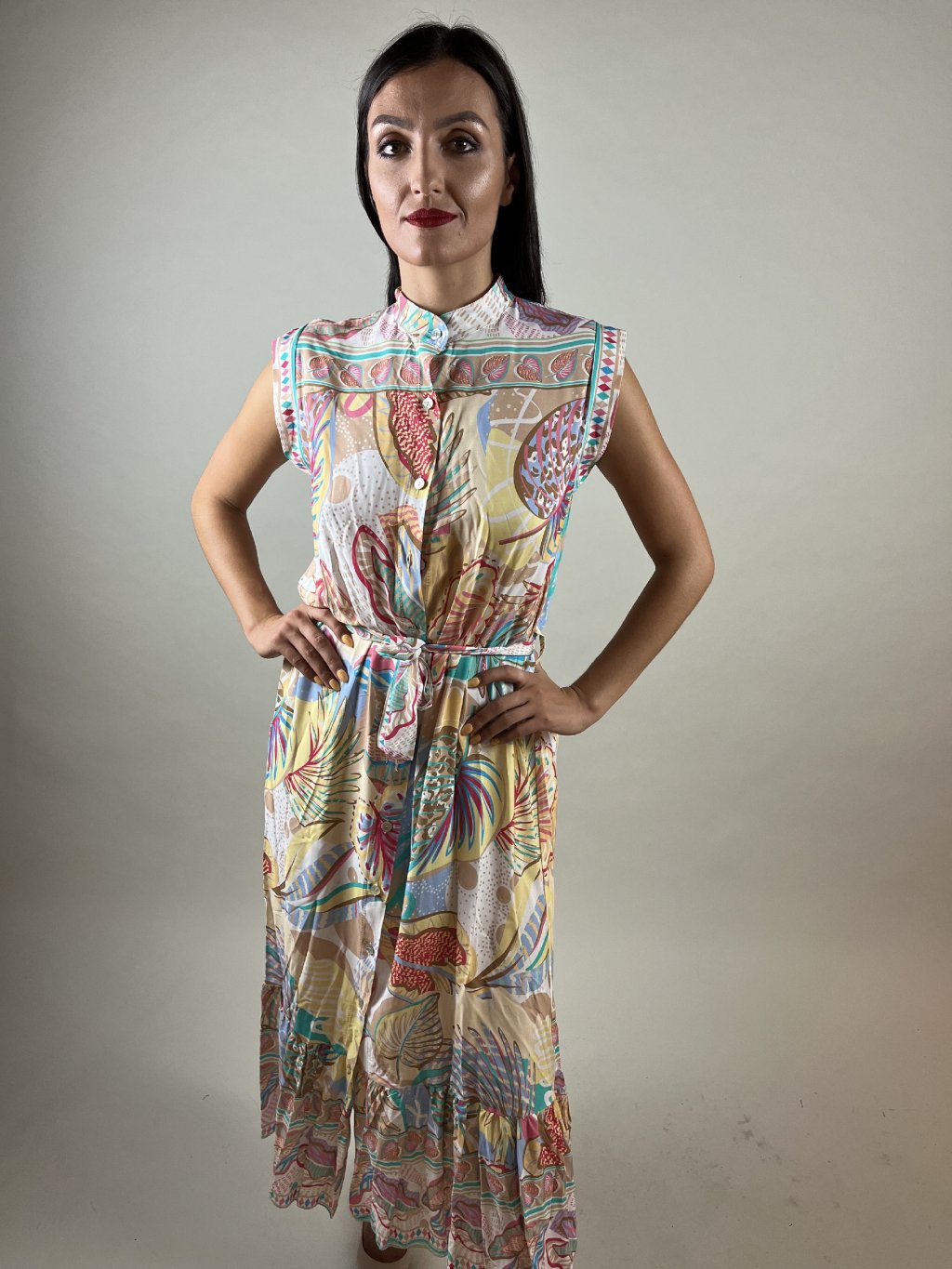 Šaty s odhalenými rameny vynikají svojí barevností. Materiál je velmi vzdušný a prodyšný.
