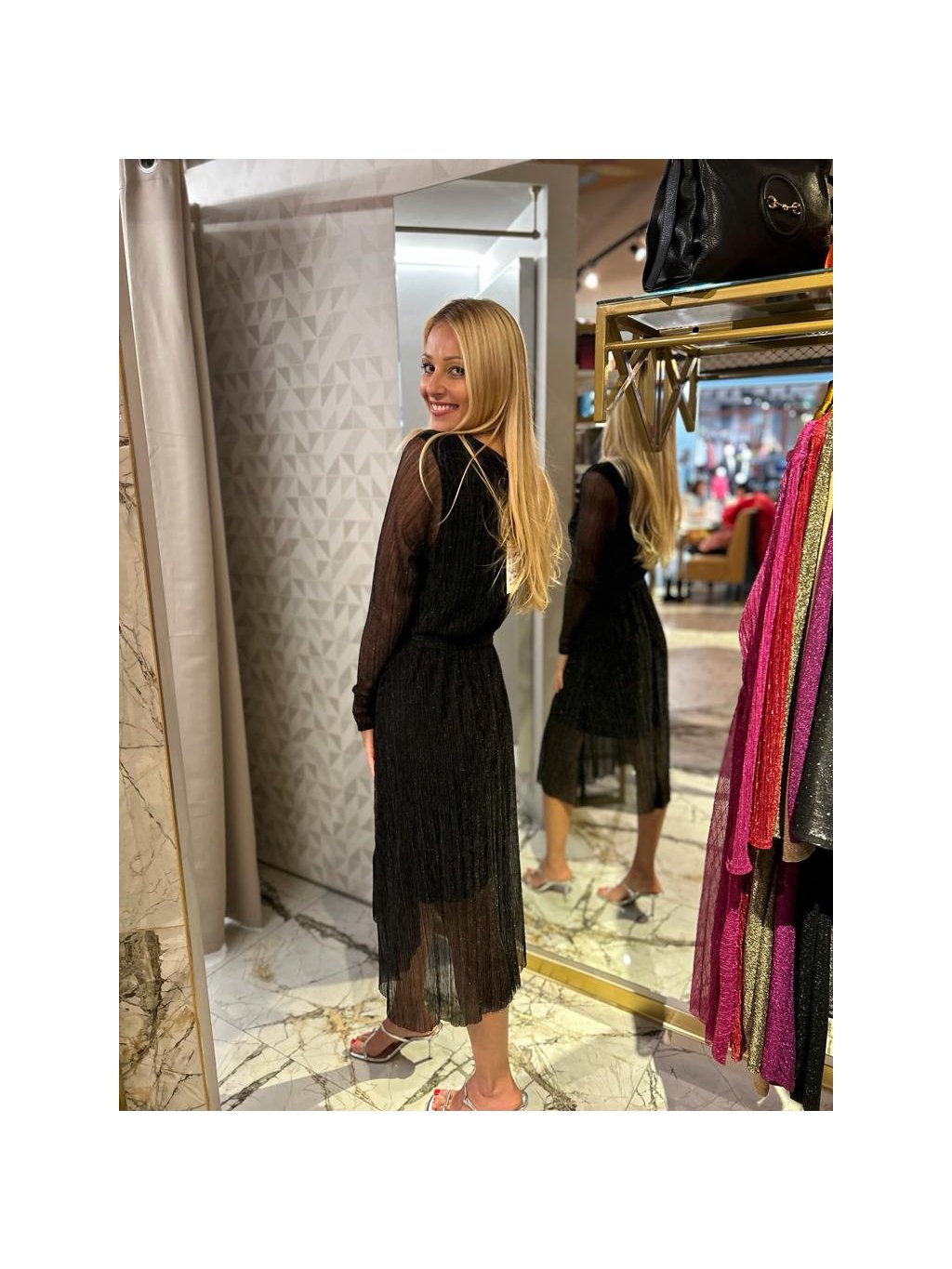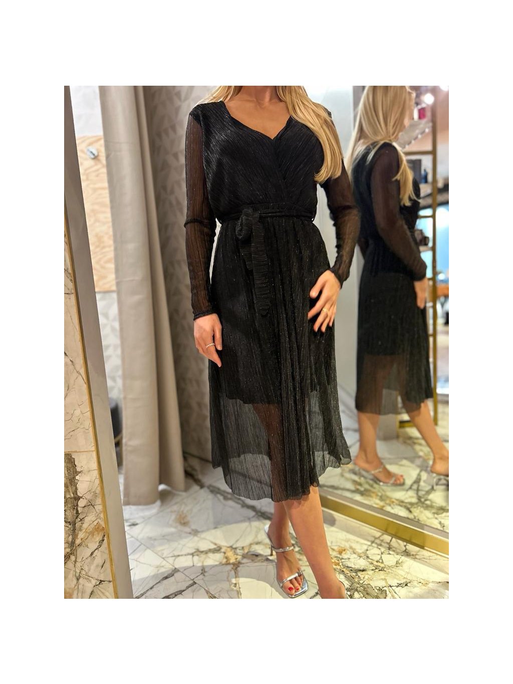 slavnostní černé šaty s průsvitnou látkou