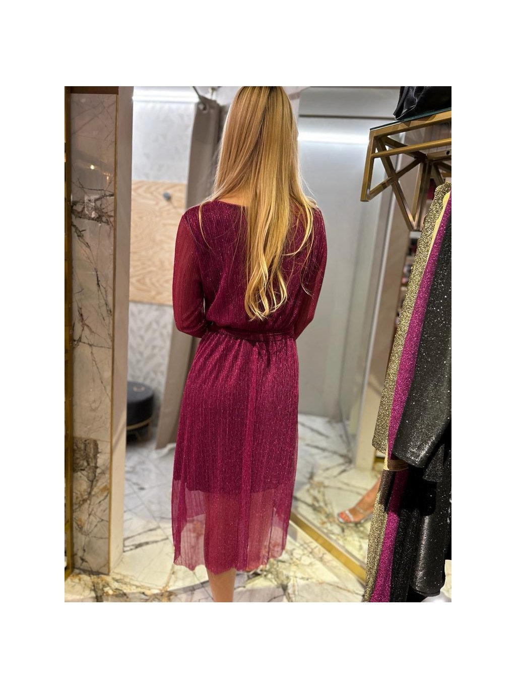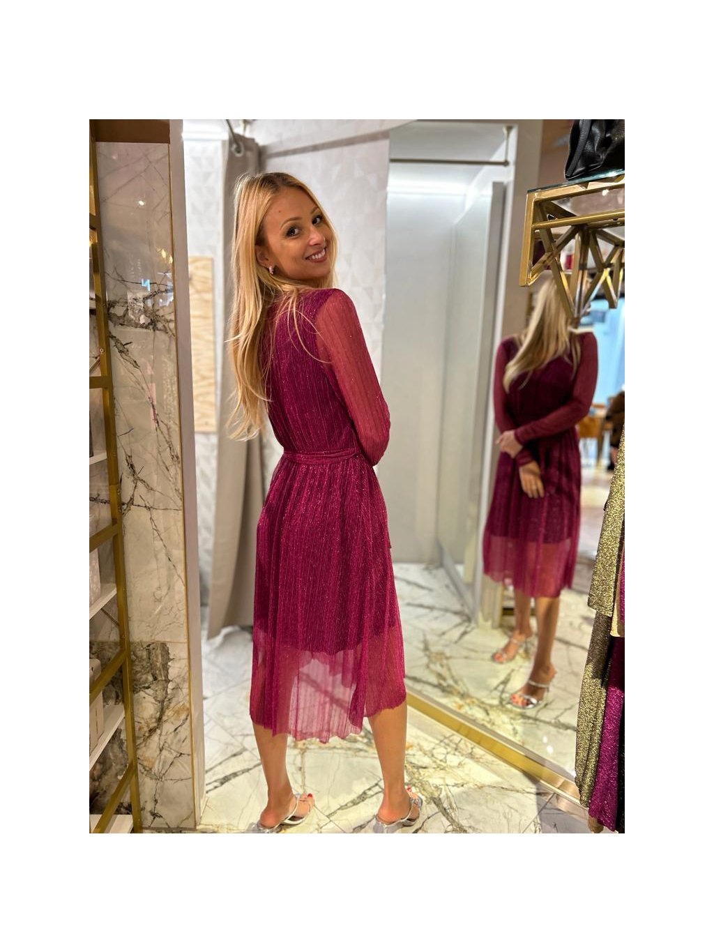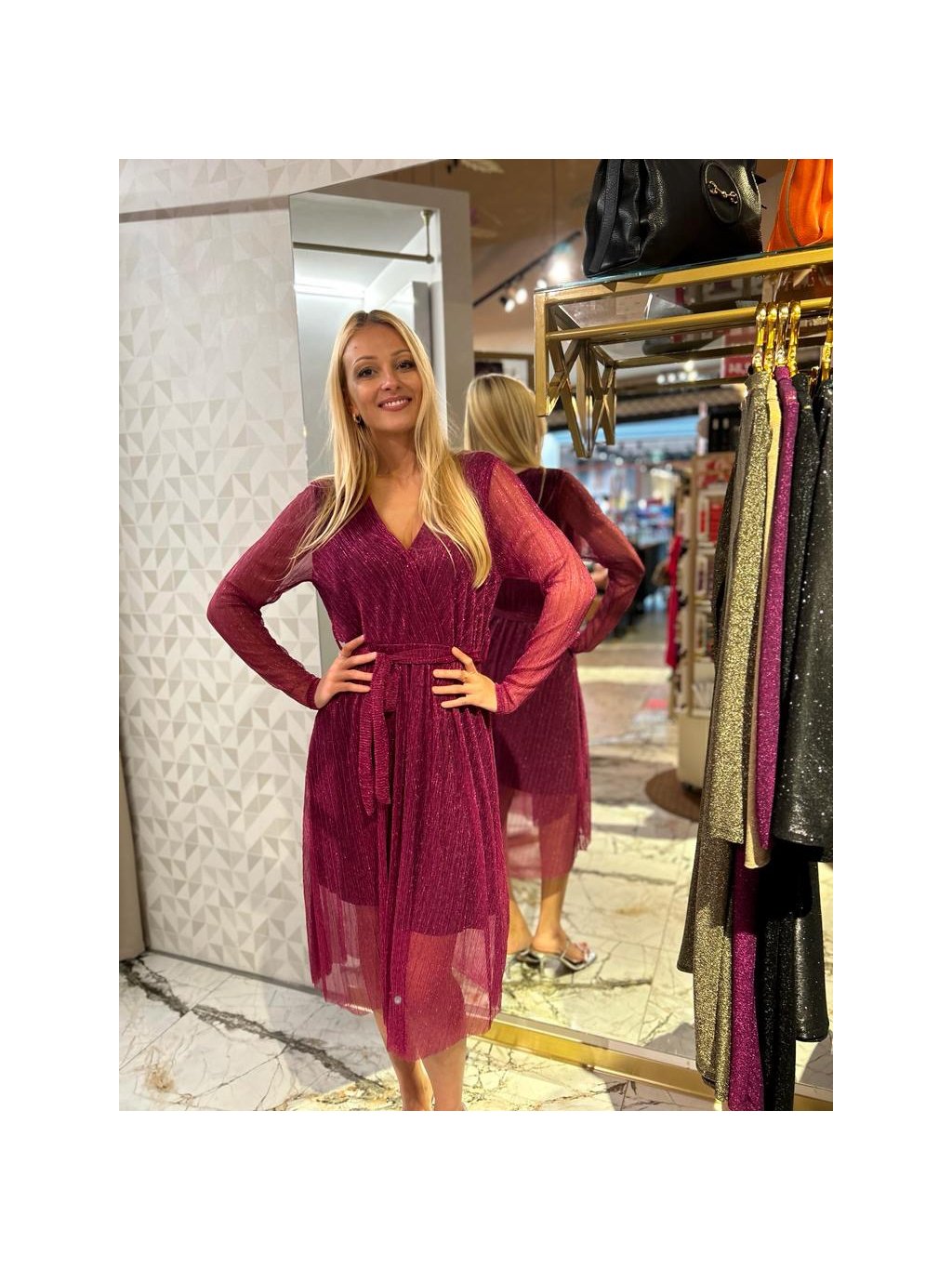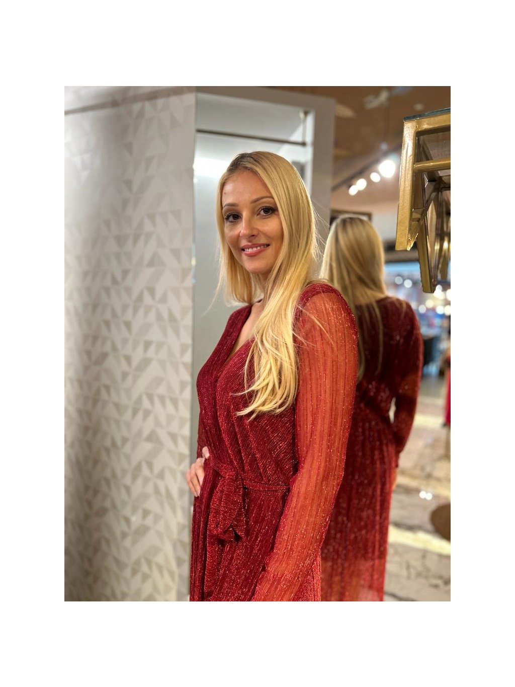 slavnostní červené šaty s průsvitnou látkou