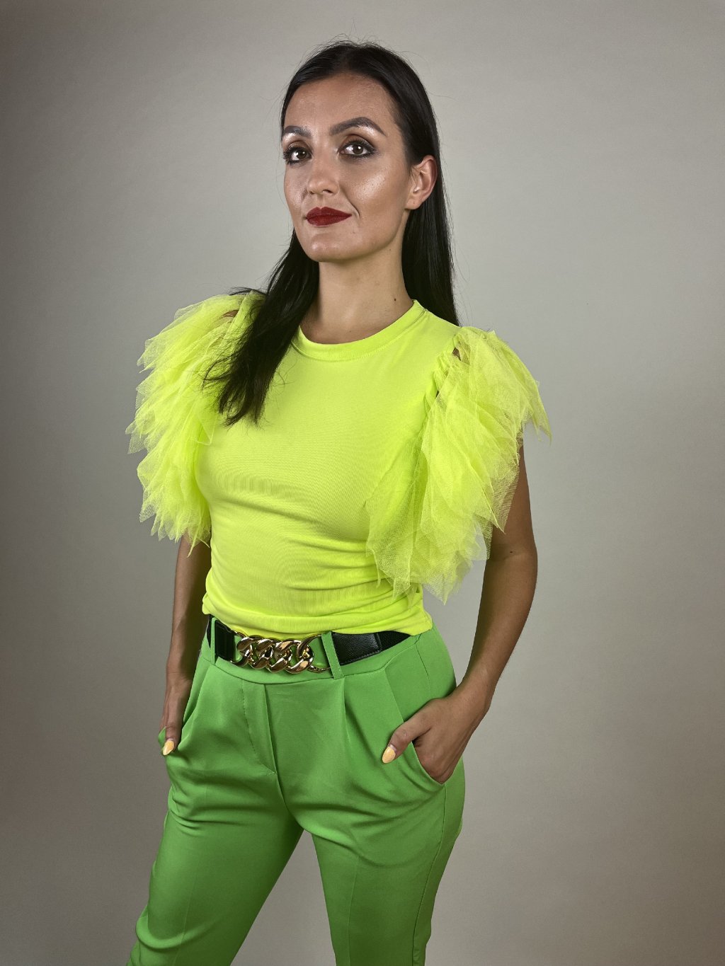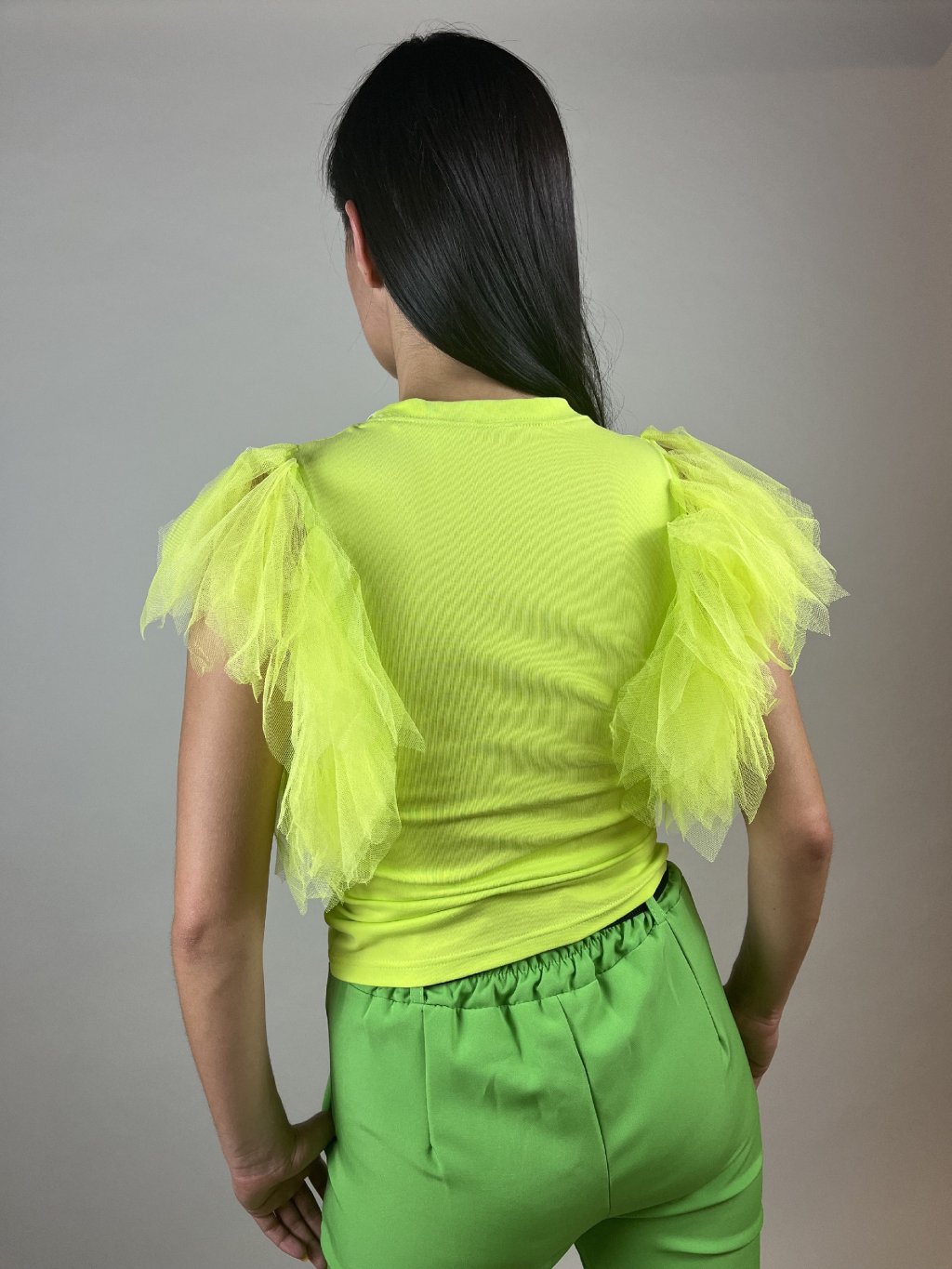 Zelené tričko se tylovými volánky